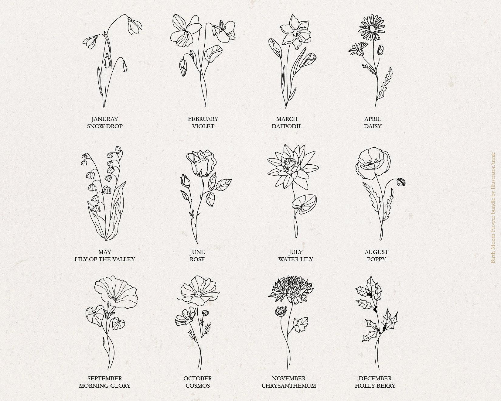 Birth Month Flower Svg Bundle Hand Drawn Flower Flower Etsy Birth Month Flowers Month Flowers Birth Flower Tattoos